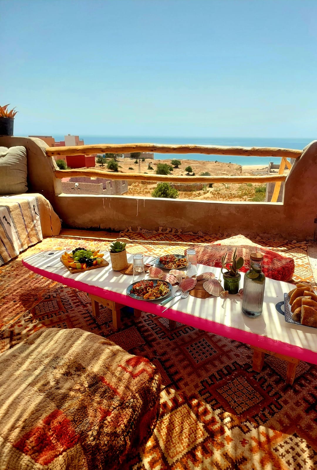 Deine Unterkunft ist im Moroccan Boho House, das von unserem Partner Morihit betrieben wird. Du lebst also mit ihm und den unterschiedlichsten Gästen aus der ganzen Welt in dem großen und gemütlichen Gasthaus zusammen.  Du musst 15 € je Nacht für Deine Unterkunft bezahlen und weitere 15 € p.T. für Frühstück und Abendessen.